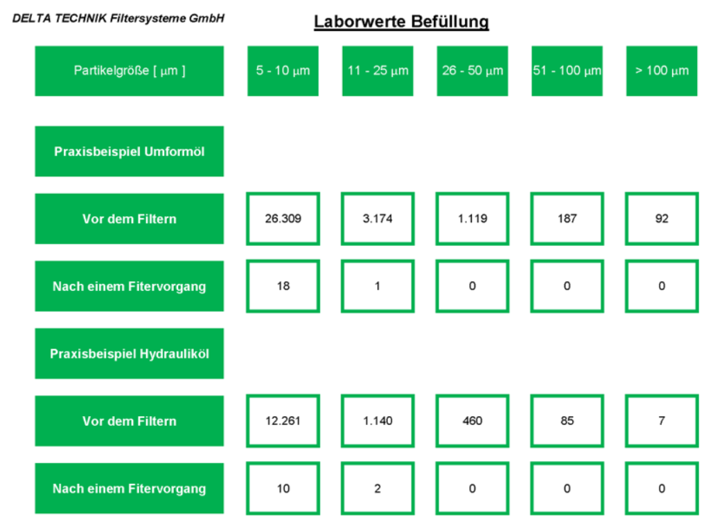 DELTA TECHNOLOGY Filter Systeme GmbH Laborwerte